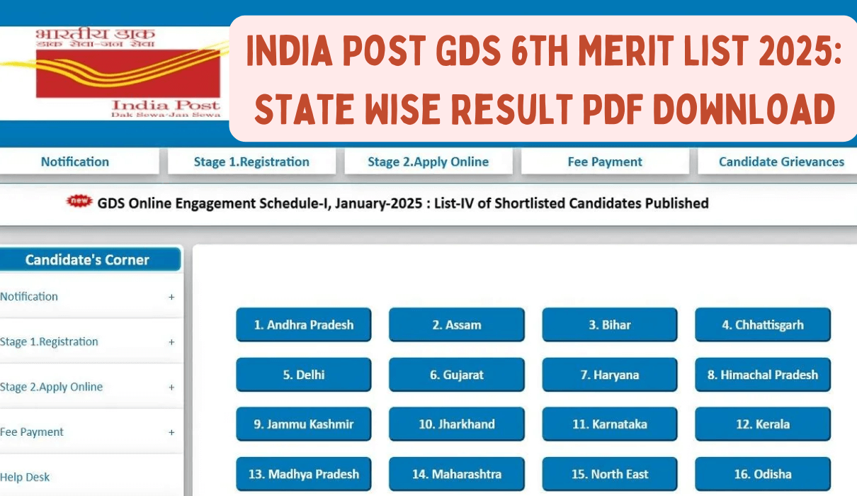 Indian Post GDS Merit List 2025 : The India Post GDS Result 2025 has been released, and candidates are now waiting for the 6th merit list. According to the latest update, the Department of India Post is expected to release the 6th merit list on 30th July 2025. However, the official confirmation regarding the exact date is still awaited. Applicants who have applied for the Gramin Dak Sevak (GDS) posts are advised to keep an eye on the official website of India Post at Official Website for the most recent updates and announcements. Once released, the merit list will include the names of the shortlisted candidates