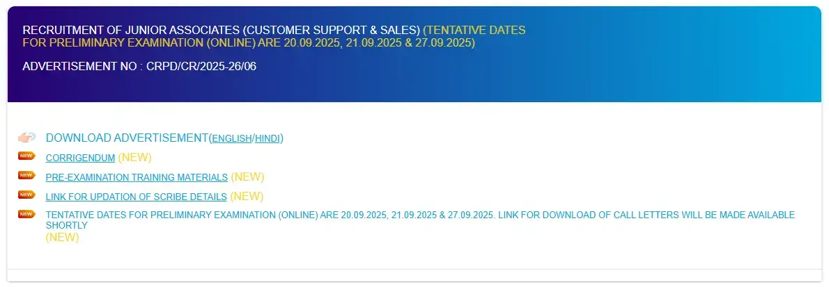 The SBI Clerk Admit Card 2025 for Prelims was released on 14 September 2025.